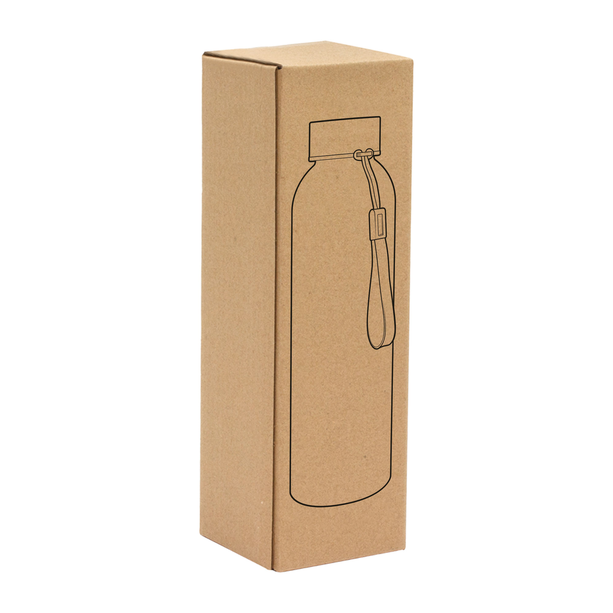 Botella de vidrio con acabado frost sublimable. Tapa de acero inoxidable, anillo de silicona antiderrame y correa reforzada.