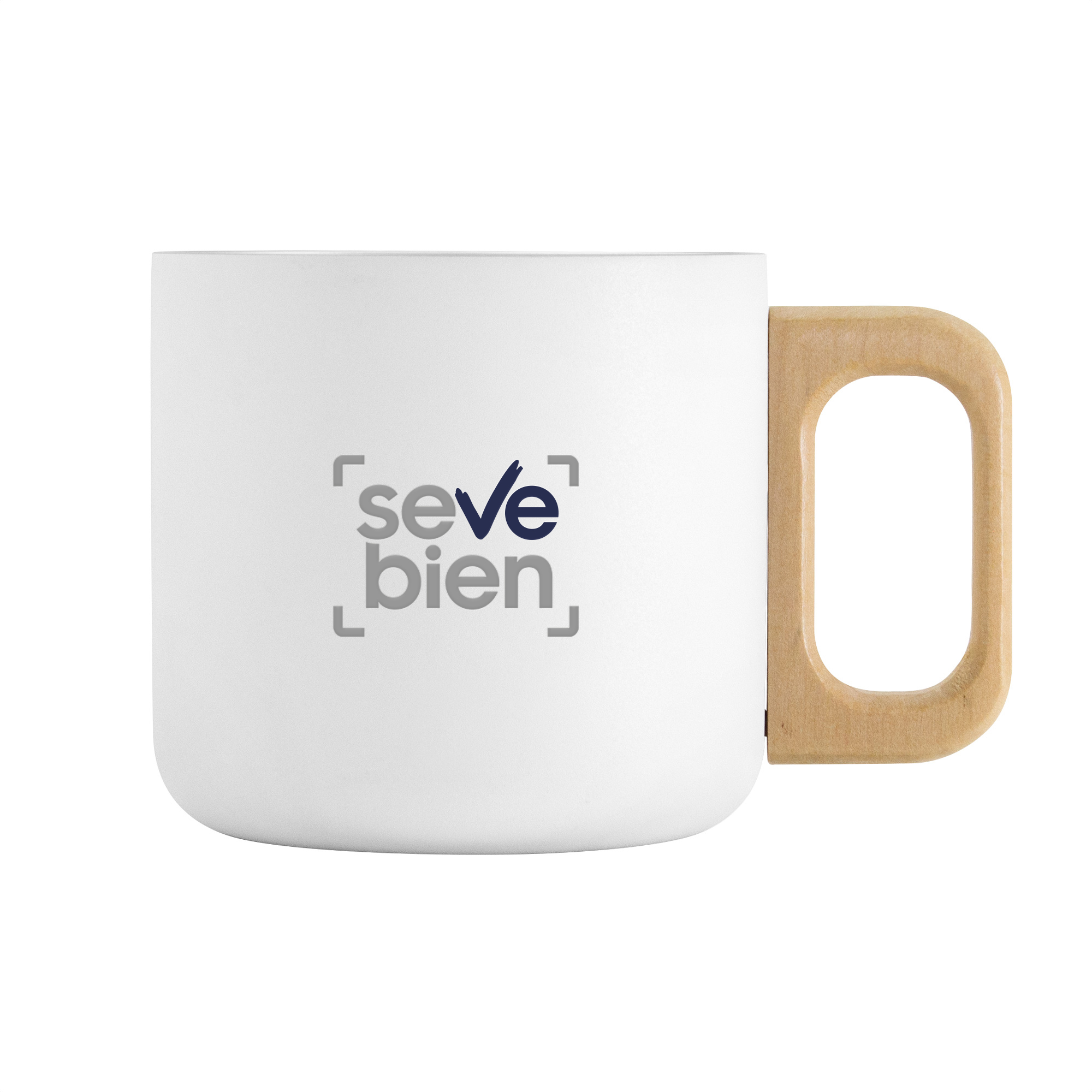 Taza doble pared, sin sellado al vacío. Interior de acero 304 y exterior de acero 201. Asa de madera color natural.  Pintura powder coat (pintura más duradera y resistente a la corrosión y el paso del tiempo). Mantiene las bebidas frías o calientes por más tiempo.